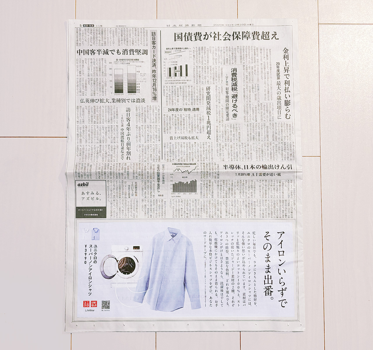 ユニクロ 2026/2/19 読売、朝日、日経新聞の広告欄にて洗濯機のイラストを描いています。店頭POP、WEBにも掲出されています🧺