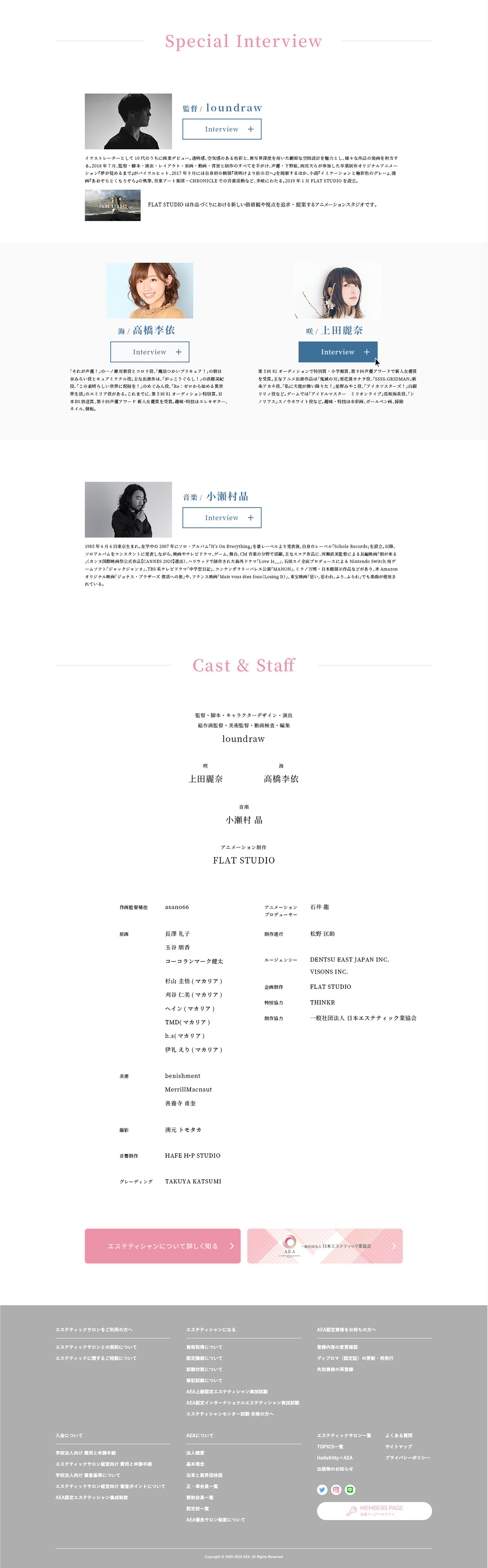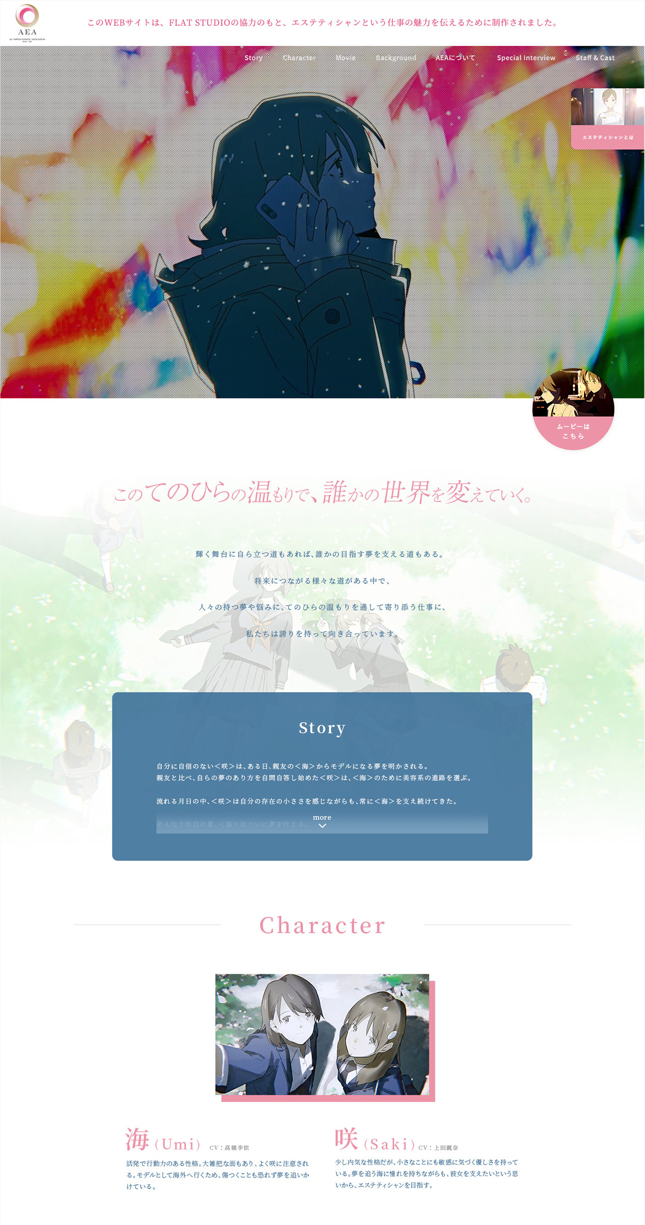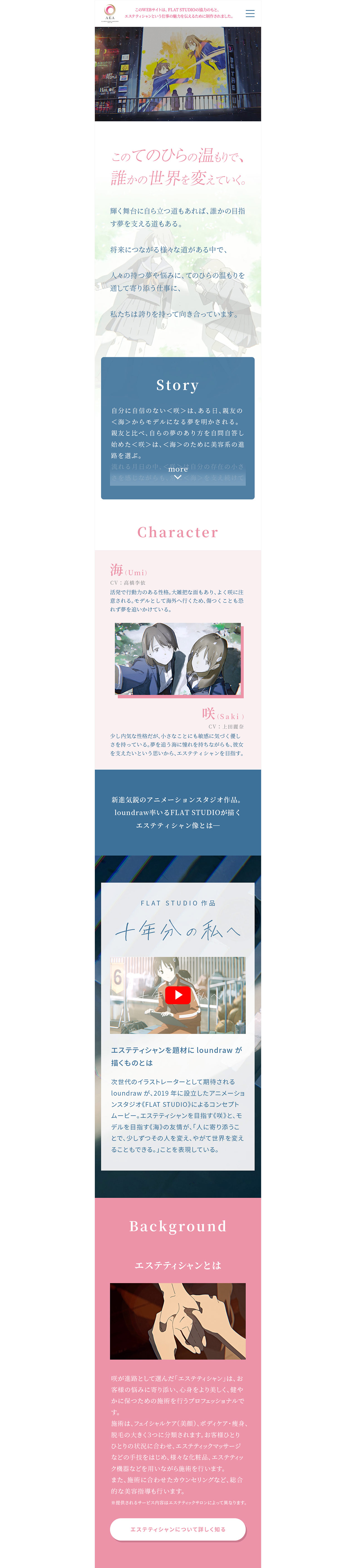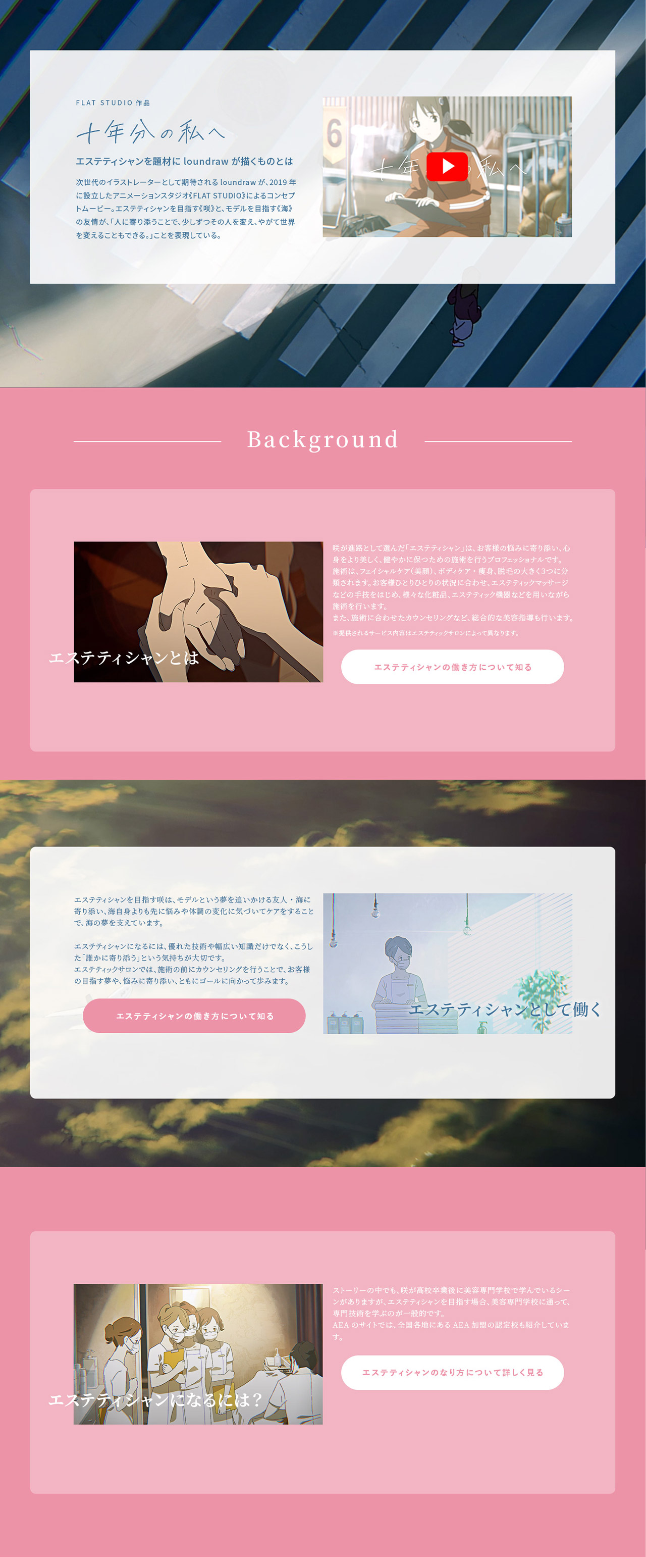 loundraw 監督率いるFLAT STUDIO ✕ 日本エステティック業協会 アニメーションプロジェクト "十年分の私へ" WEBSITEのアートディレクション / デザインを担当しました。
