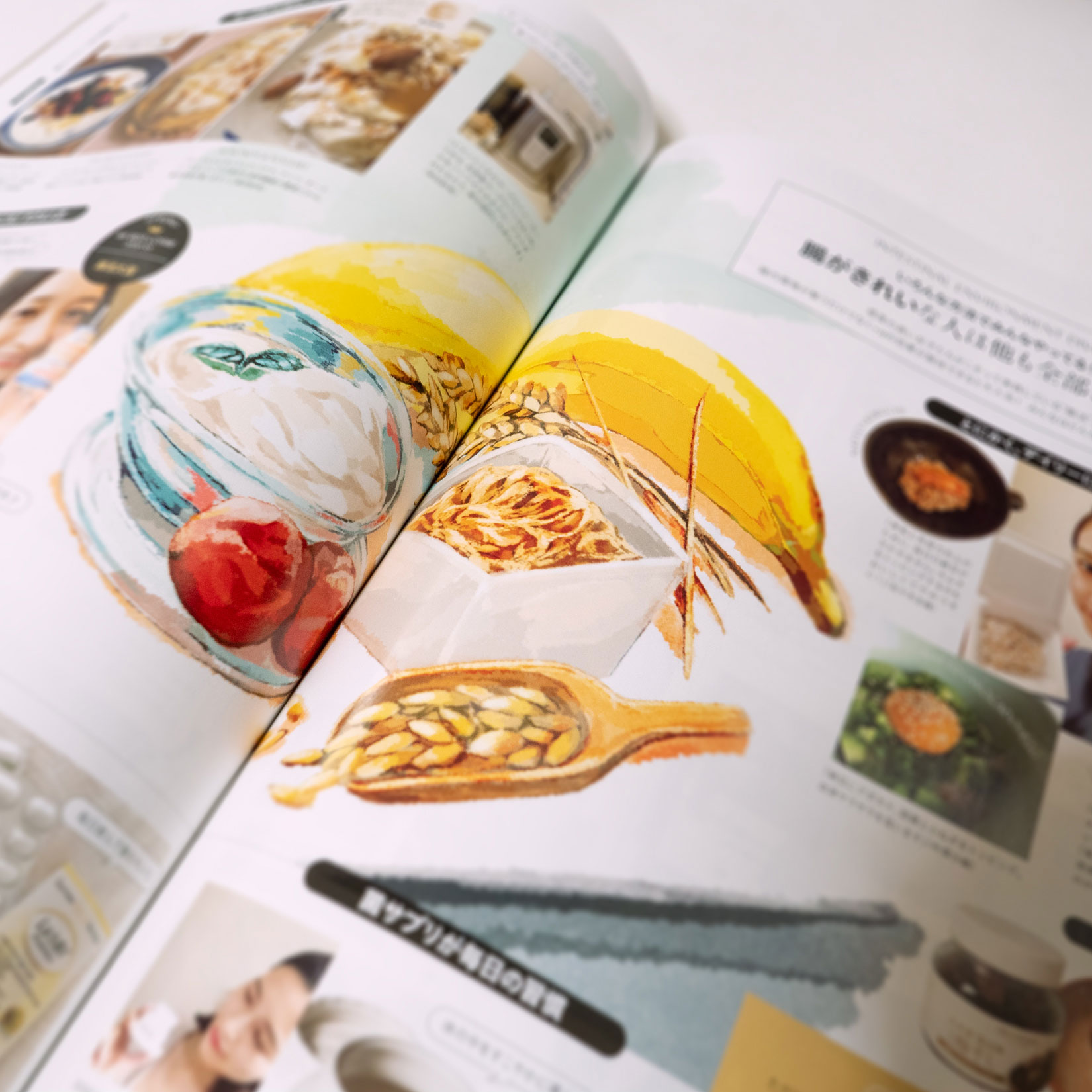 宝島社 SPRiNG 8月号 「食べて飲んできれいになる!」イラストを描かせていただきました。
