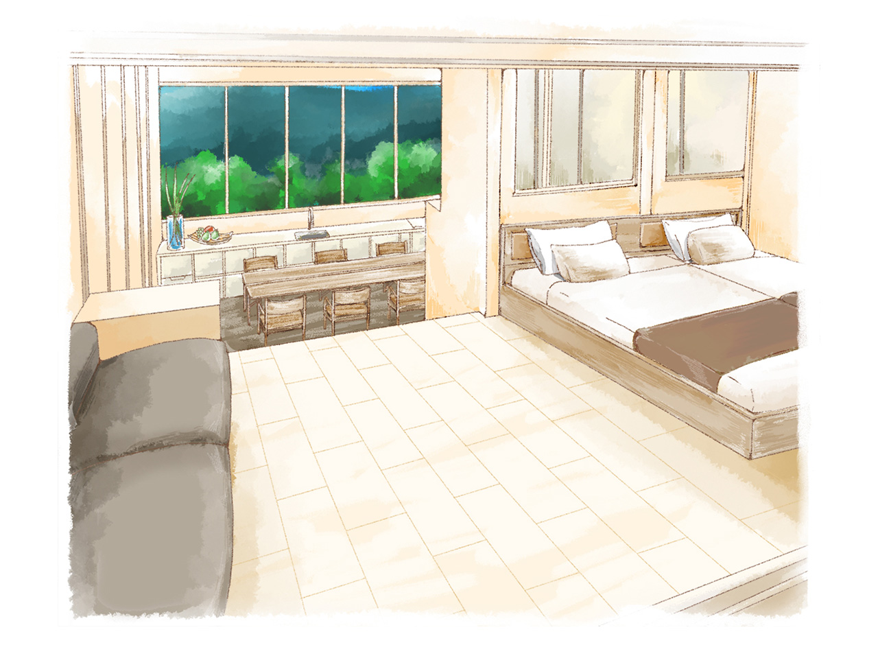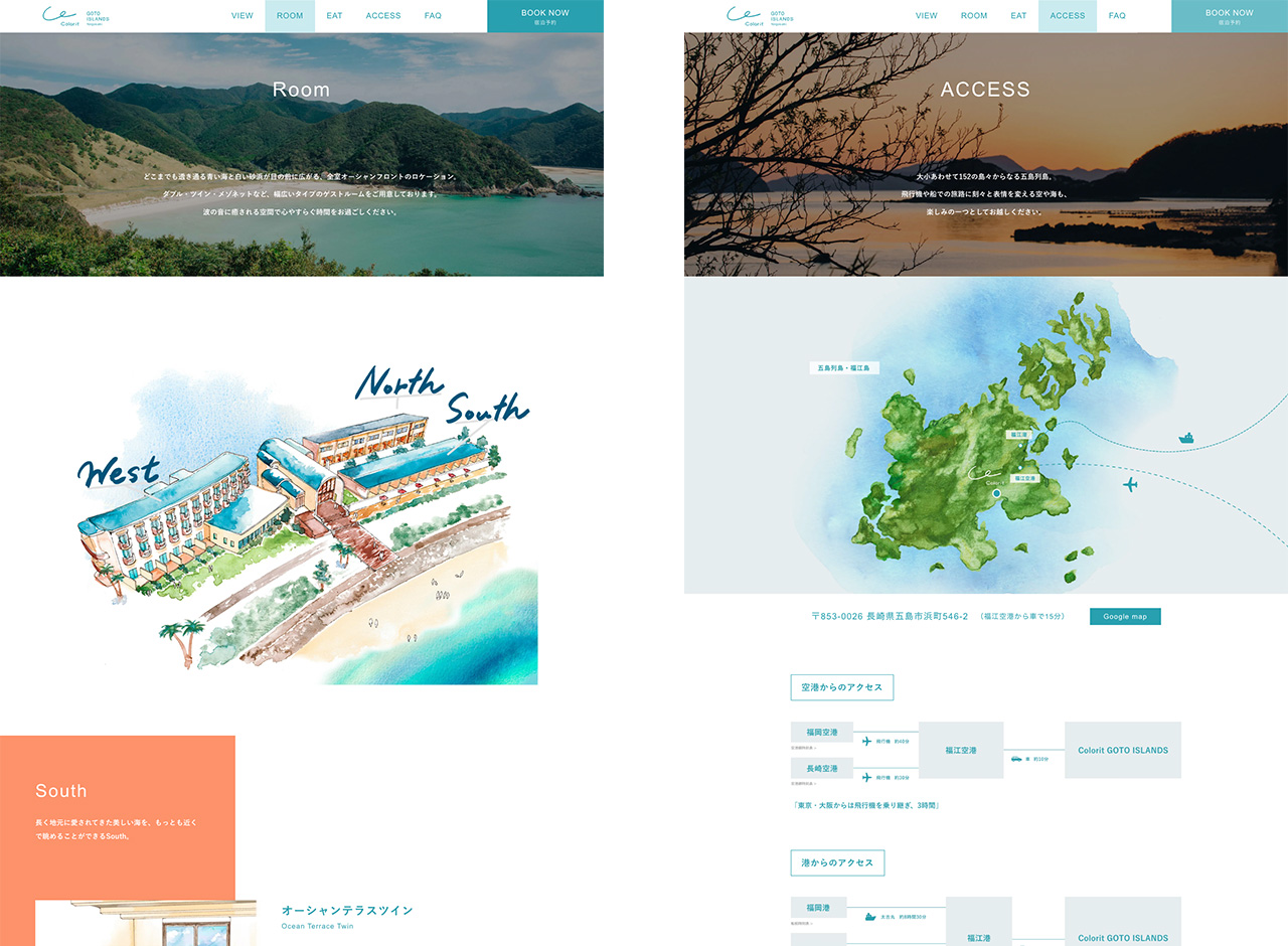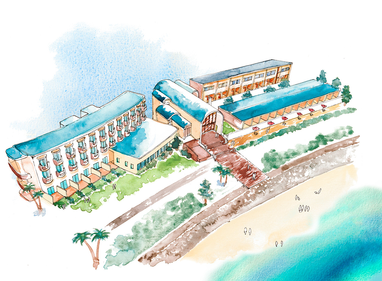 カラリト(Colorit) | Colorit GOTO ISLANDS 施設オープンに向けてイラストを描きました。透明水彩です。 「飾らない自分にかえる、晴れやかな時間” をコンセプトとしたホテル・滞在施設「カラリト五島列島」。2022年8月 五島列島・福江島にオープン。」 https://colorit.jp/