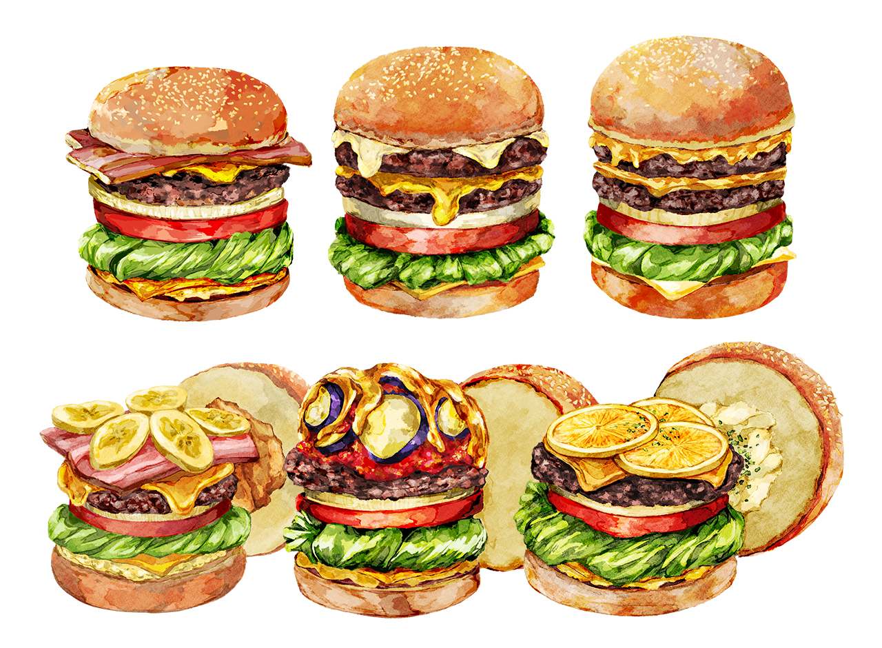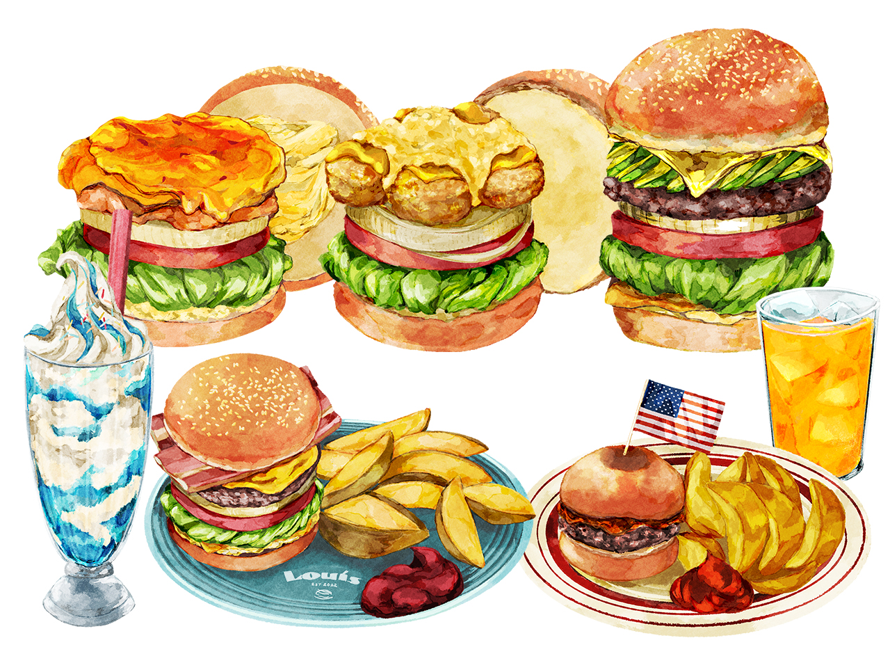 louis hamburger restaurantのグランドオープン、たくさん描かせてもらってます!メニューもぜひ店舗でごらんください〜!本当においしい。