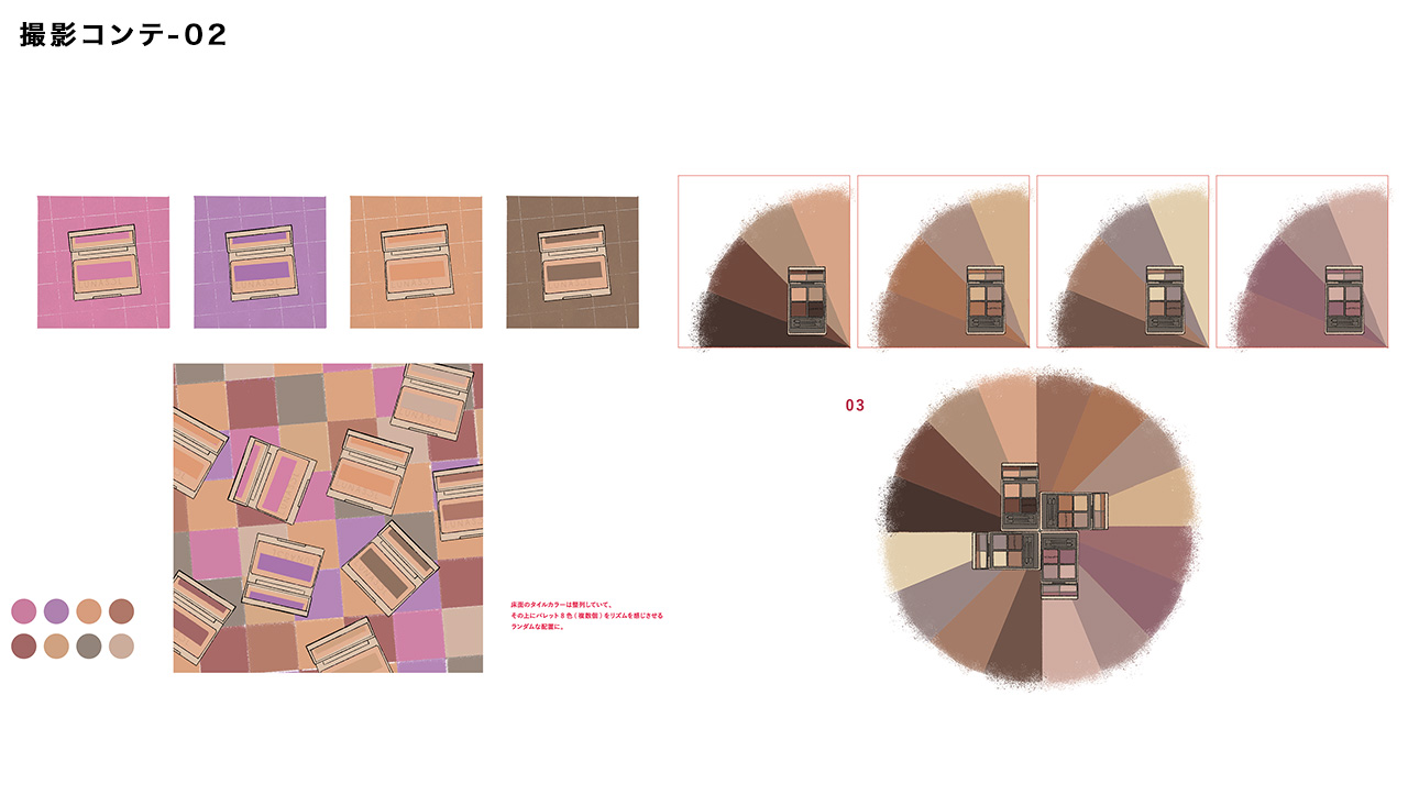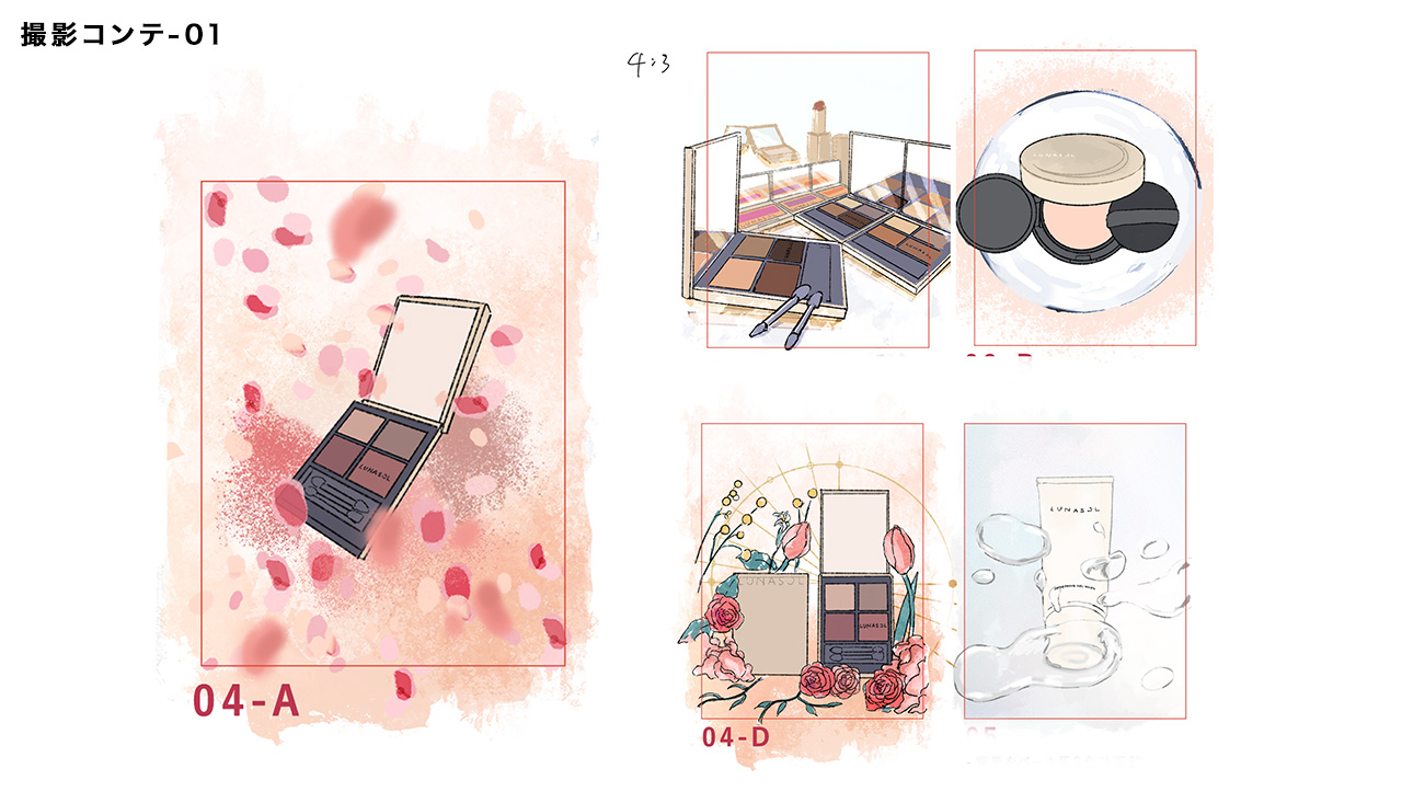 LUNASOL 2026SSの新作アイテムカットの撮影アートディレクション、コンテを制作しています。(クライアント様のご厚意でコンテの一部を掲載しています)